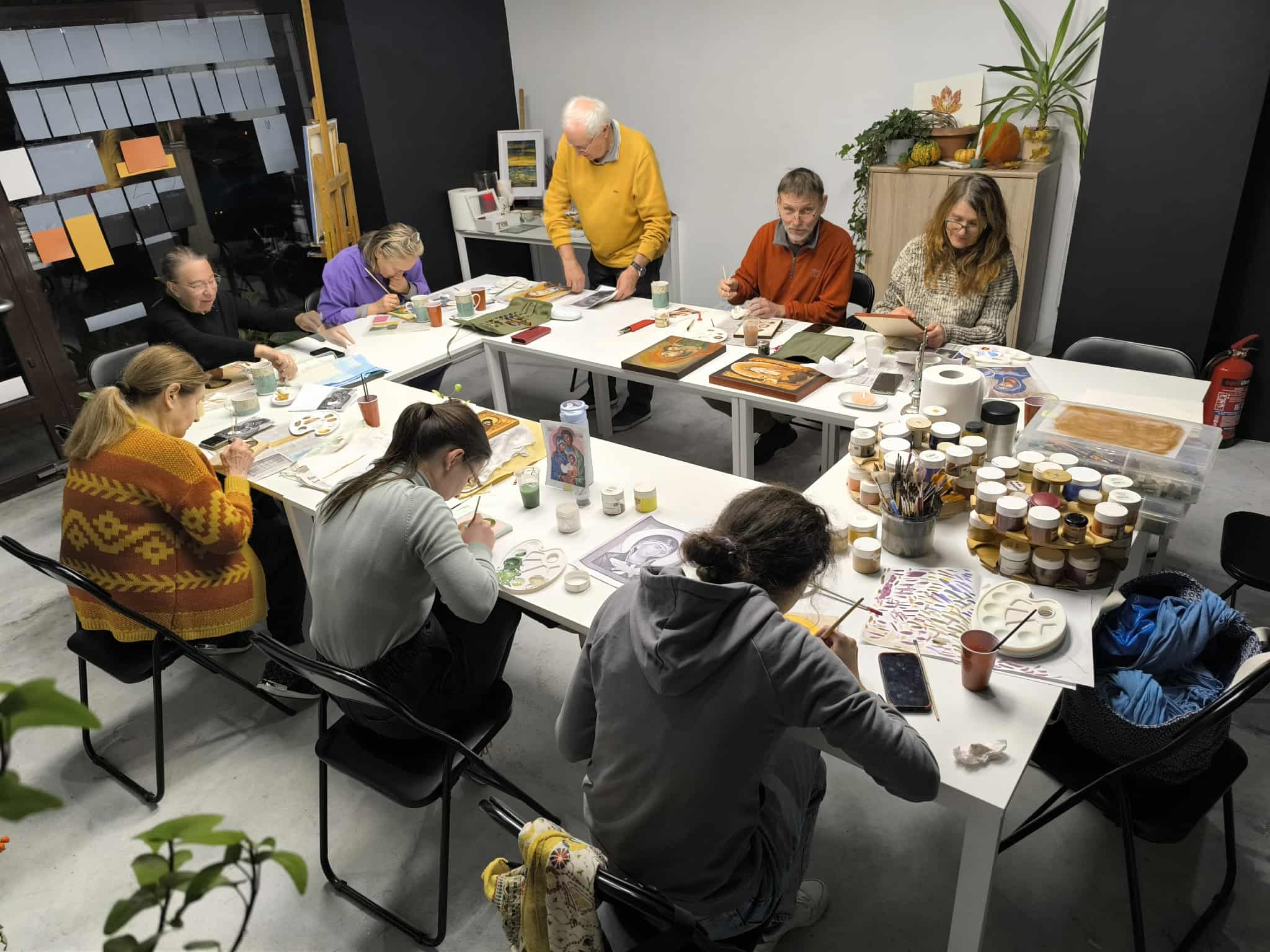 Pracownia zaprasza przede wszystkim osoby dorosłe i seniorów, tworząc ciepłe miejsce do rozwijania pasji, odpoczynku i odkrywania twórczej strony siebie.